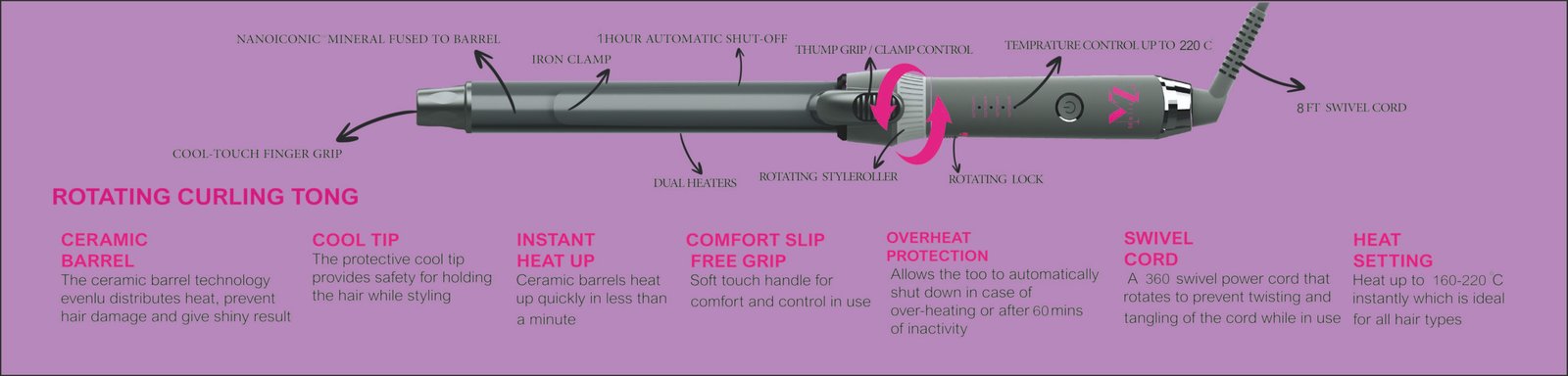 One-Click Rotating Technology – Creates perfect curls in seconds.